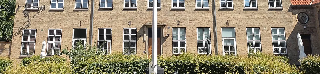 Velkommen til Bygmesterskolen.På Skolens område der er indrettet 20 boliger i ejerforeningen Bygmesterskolen.